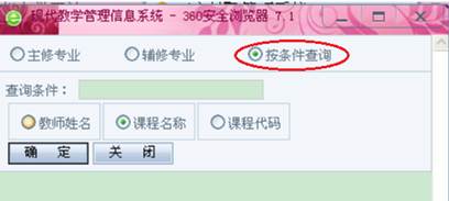 或选择“按条件查询”,输入课程名称、任课教师姓名或课程代码查找可选的教学班: