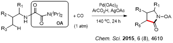 10.Wang, C.; Zhang, L.; Chen, C.; Han, J.; Yao, Y.*; Zhao, Y.*, Oxalyl amide assisted palladium-catalyzed synthesis of pyrrolidones via carbonylation of [gamma]-C(sp3)-H bonds of aliphatic amine substrates. Chem. Sci. 2015, 6 (8), 4610-4614.